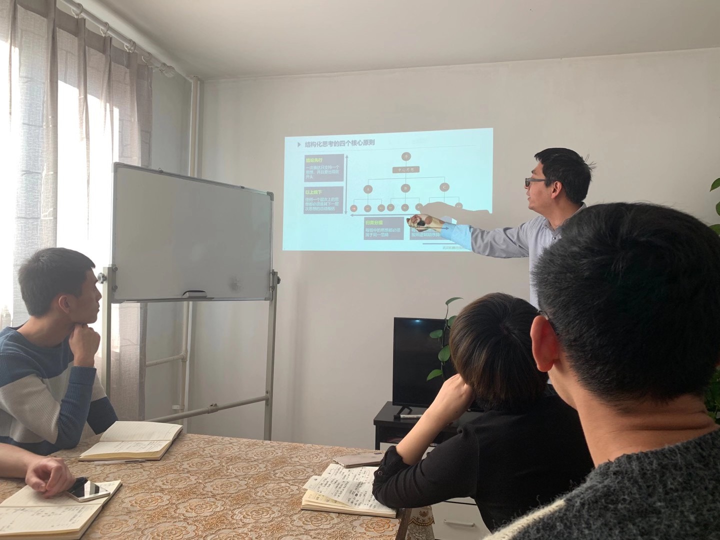 11月28日,北大金牌講師工作室邀請趙進平老師為全體人員培訓《結構化思維》課程。趙進平老師是中國人民大學碩士,國際注冊管理咨詢師,曾任職于國際知名企業京東方和國內知名企業清華同方,現為北大縱橫高級合伙人。趙進平老師深耕培訓咨詢行業15年,有豐富的管理實戰經驗。通過一天的課程研習,北大金牌講師工作室的小伙伴們掌握了結構化思維的關鍵點,在日常溝通、書面表達方面有了質的飛躍。